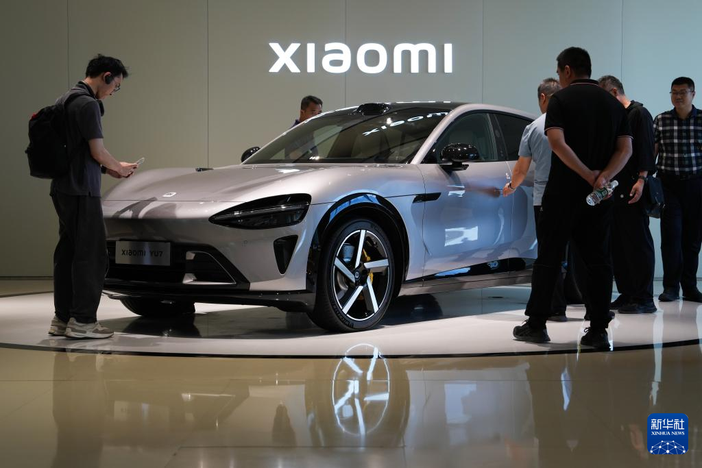 6月16日,参观者在北京小米汽车工厂的体验中心了解YU7汽车。