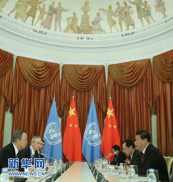 潘基文表示,聯(lián)合國高度贊賞中國在應(yīng)對各種全球性挑戰(zhàn)方面發(fā)揮的領(lǐng)導(dǎo)作用。在安理會5個常任理事國中,中國是派出維和人員最多的國家。中方派軍艦參加敘利亞化學(xué)武器海運聯(lián)合護航行動,積極參與推動政治解決敘利亞、南蘇丹等地區(qū)熱點問題,充分證明中國在維護世界和平安全方面作出的重要貢獻。