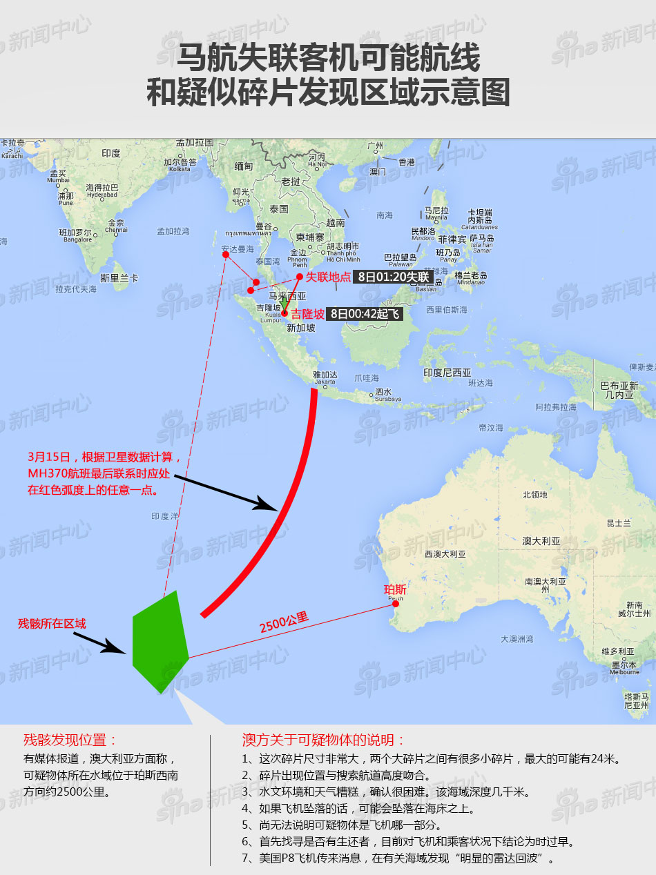 ??? 發現可疑碎片的位置與馬航失聯客機南部搜尋航道高度吻合