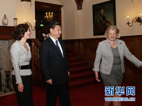 ????新華網(wǎng)海牙3月24日電(記者陳贄 潘治)國(guó)家主席習(xí)近平24日在海牙會(huì)見(jiàn)荷蘭議會(huì)一院議長(zhǎng)布勒克-克諾爾和二院議長(zhǎng)范米爾滕伯格。
