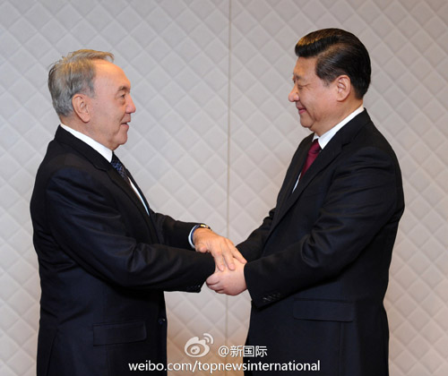 ????新華網(wǎng)北京3月24日電 據(jù)新華社“新國際”微博報道,去年金秋,習近平對哈薩克斯坦進行國事訪問。今年年初,中哈元首在索契冬奧會開幕式親切交談。23日,兩人在荷蘭再次會晤。習近平歡迎納扎爾巴耶夫總統(tǒng)5月訪華并出席上海亞信峰會。“作為候任主席國和首倡國,中哈更要共同努力,將峰會辦成團結友好、成果豐碩的盛會。”