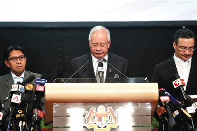 馬來西亞總理納吉布在吉隆坡召開緊急發(fā)布會。新華社記者 王申 攝
