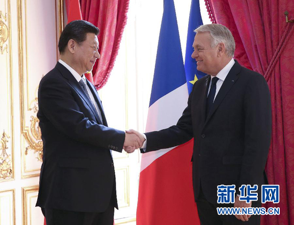 3月27日,國家主席習(xí)近平在巴黎會見法國總理艾羅。 新華社記者 龐興雷攝