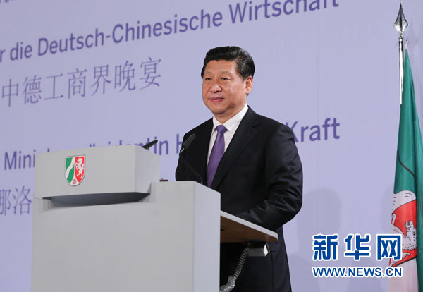 ????習近平在致辭中表示,經貿關系是中德關系的基石和推進器。中德互為各自地區最大貿易伙伴,深化經貿金融合作是我這次訪德的重要內容之一。兩國主管部門簽署了多個合作文件,對兩國企業是重大利好,必將進一步促進中德經貿往來和相互投資,對中歐經貿關系也將產生示范效應。