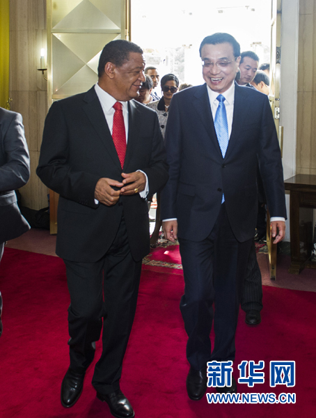國務院總理李克強當地時間6日上午在亞的斯亞貝巴國家宮會見埃塞俄比亞總統穆拉圖。