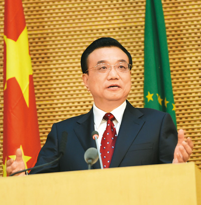 五月五日,國務(wù)院總理李克強(qiáng)在位于亞的斯亞貝巴的非洲聯(lián)盟總部發(fā)表題為《開創(chuàng)中非合作更加美好的未來》的演講。新華社記者 李學(xué)仁攝