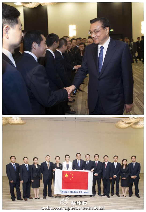 ??? 新華網北京5月9日電 據(jù)新華社“新國際”微博報道,8日,李克強總理在羅安達看望援安醫(yī)療隊。“有什么困難嗎?”李克強與隊員一一握手,詢問工作情況。得知隊員最大的困難是語言,李克強鼓勵大家說,辦法總比困難多,雖然語言溝通有障礙,但可以用心靈感受對方疾苦,讓對方切身感受到中國人民的美好情誼。?