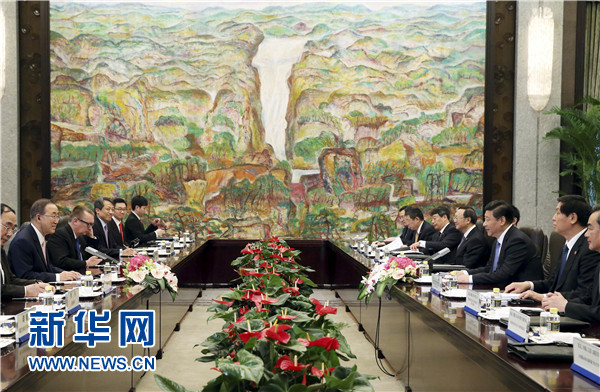 ??? 習近平指出,國際社會應該共同努力,促進世界和平與發展。一是堅持政治解決沖突的方向。世界上熱點問題不少,按下葫蘆起了瓢。解決這些問題要既得理又得法,一味示強施壓不行,外部武力干預更要不得,政治解決是唯一出路。聯合國要高舉這面旗幟。二是堅持實現共同發展的目標。聯合國要發揮政治、道義優勢、統籌協調作用,制定2015年后發展議程,以消除貧困為核心,實現可持續發展。中方希望今年9月舉行的聯合國氣候變化峰會取得成功。三是堅持聯合國在國際事務中的引導作用。在反恐問題上,聯合國應該有更大作為,倡導鮮明的是非標準,推動國際社會堅決打擊任何形式的恐怖主義。在網絡問題上,聯合國要發揮主渠道作用,講規則、講主權、講透明,尊重各國在信息安全上的關切,實現共同治理。中國將繼續堅定支持聯合國工作。