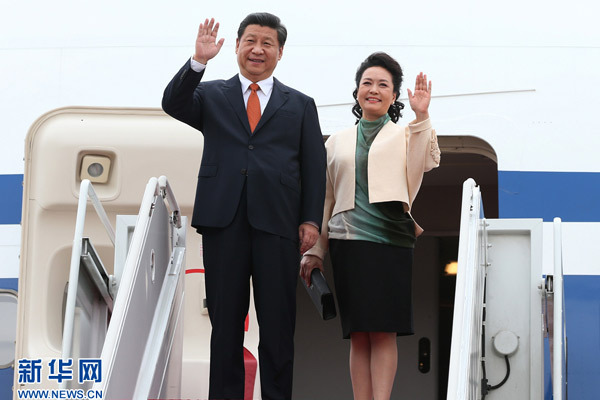 ??? 7月3日,國(guó)家主席習(xí)近平抵達(dá)首爾,開始對(duì)韓國(guó)進(jìn)行國(guó)事訪問。這是習(xí)近平和夫人彭麗媛走出機(jī)艙。 新華社記者 蘭紅光 攝