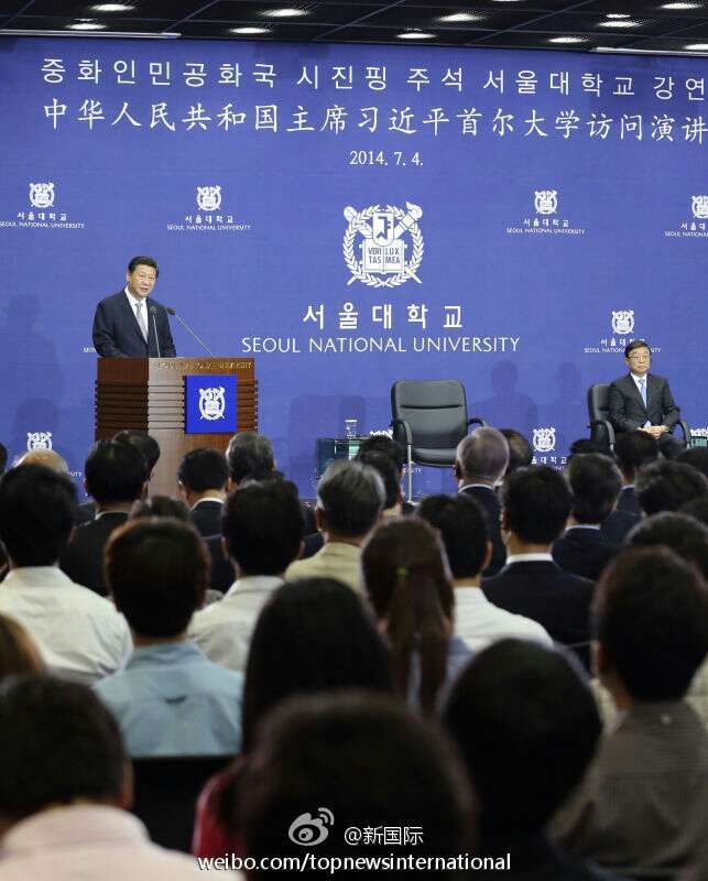 ??? 新華網(wǎng)北京7月4日電 據(jù)新華社“新國際”微博報道,首爾大學的大講堂座無虛席,傾聽中國,感受中韓夢想的交匯。習主席說,要有海納百川的胸懷,以開放包容心態(tài)虛心傾聽世界的聲音。中國將繼續(xù)向世界學習、向各國人民學習,學習人類創(chuàng)造的一切文明成果,推動中國和世界發(fā)展得更好。?