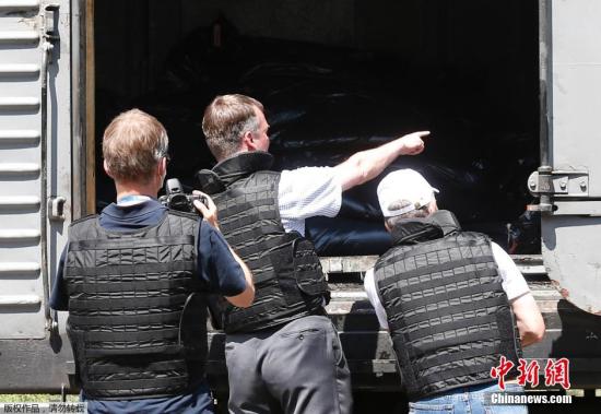 當(dāng)?shù)貢r(shí)間2014年7月20日,烏克蘭頓涅茨克Torez,馬航墜機(jī)遇難乘客遺體被裝上列車?yán)洳剀噹麑⒈贿\(yùn)走。載有部分遺體的火車從距空難現(xiàn)場(chǎng)不遠(yuǎn)的烏克蘭托列茲市出發(fā),前往頓涅茨克市。火車離站前,身處空難現(xiàn)場(chǎng)的歐洲安全與合作組織(歐安組織)代表檢查了運(yùn)載遺體的5節(jié)冷藏車廂。