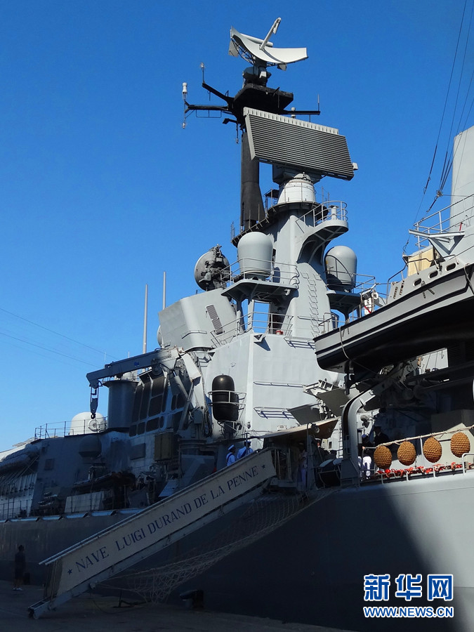 ????“路易吉·杜蘭德·德拉佩訥號”驅(qū)逐艦艦上設(shè)施。新華網(wǎng)記者 周喆 攝