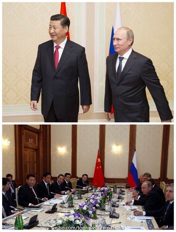 ????新華網北京9月12日電 據新華社“新國際”微博報道,國家主席習近平11日在塔吉克斯坦首都杜尚別會見俄羅斯總統普京時說,中俄雙邊關系和各領域合作勢頭強勁,雙方應加大相互支持,擴大相互開放,相互給力借力,共同應對外部風險和挑戰,實現各自發展振興的宏偉目標。