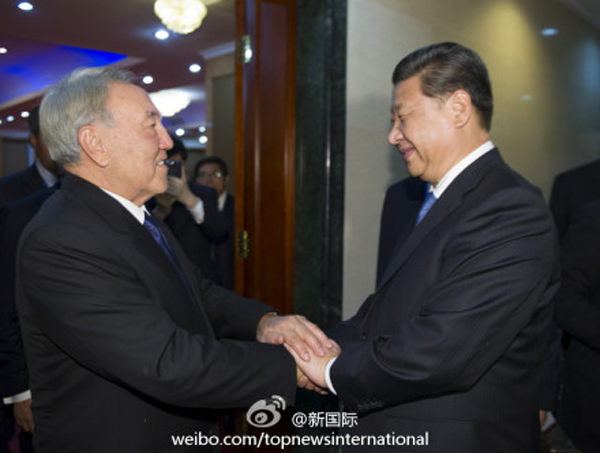 ????新華網北京9月13日電 據新華社“新國際”微博報道,習近平12日在會見納扎爾巴耶夫總統時說,今年6月我在北京會見了赴華參加夏令營活動的納扎爾巴耶夫大學200名師生,年輕人朝氣蓬勃、奮發向上的精神風貌給我留下深刻印象。我們要為兩國年輕人提供更多交流互動的機會,確保中哈友好事業代代相傳。