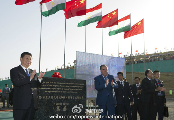 ????新華網北京9月14日電 據新華社“新國際”微博報道,習近平主席13日同拉赫蒙總統出席中國—中亞天然氣管道D線塔境內段開工儀式。該段為管道所有過境國中距離最長、施工難度最大項目。習近平說,面對困難需要一往無前的勇氣和戰天斗地的決心?!靶值芡模淅麛嘟稹保灰R心協力就沒有解決不了的難題。