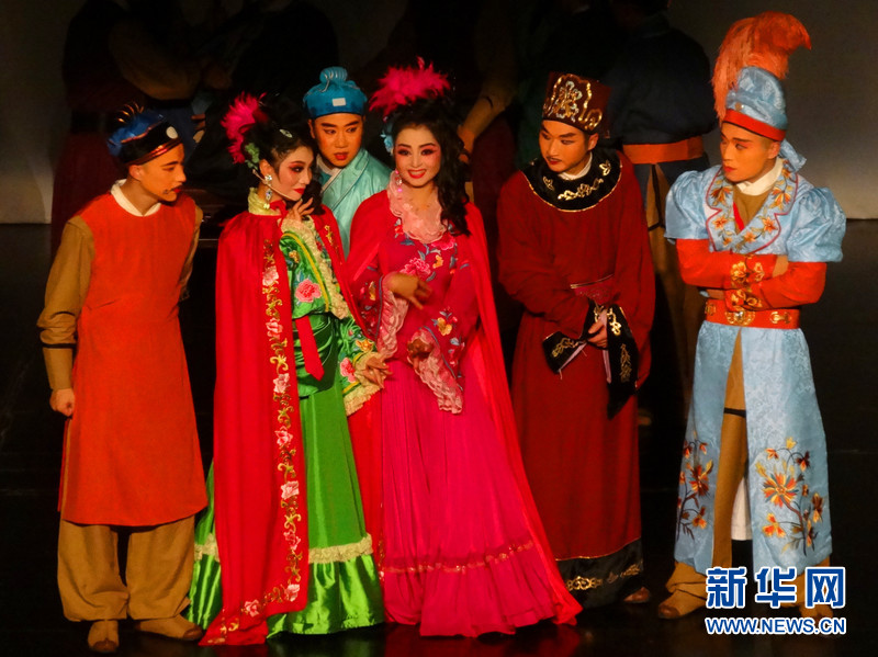 9月18日晚,在西班牙巴塞羅那,中國(guó)貴州京劇院給當(dāng)?shù)赜^眾帶來(lái)的京劇版《堂吉訶德》。圖為演員在臺(tái)上表演(記者周喆攝)