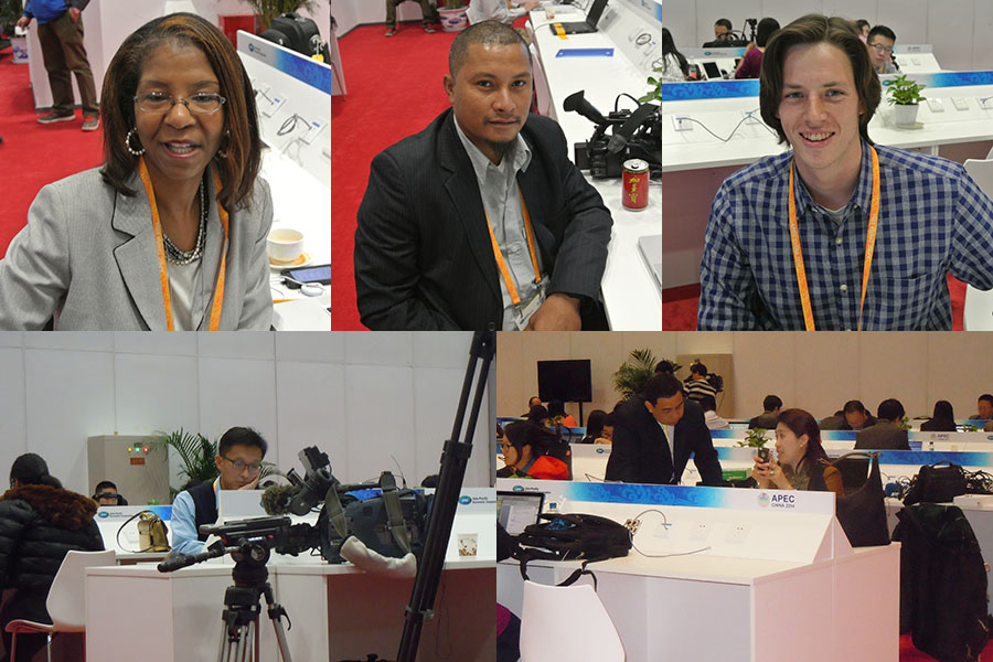 ????日本《每日新聞》的記者井出晉平已經是第二次參加APEC會議報道了。“上次是去年在巴厘島舉行的。與上一屆相比,我個人感覺這次參會的人特別多,規模特別大。”