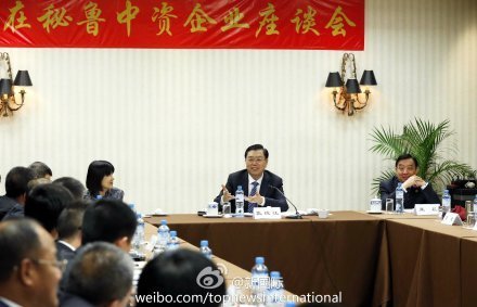 ????新華網北京11月23日電 據新華社“新華國際”客戶端報道,全國人大常委會委員長張德江22日在利馬與20家在秘魯中資企業代表座談交流。