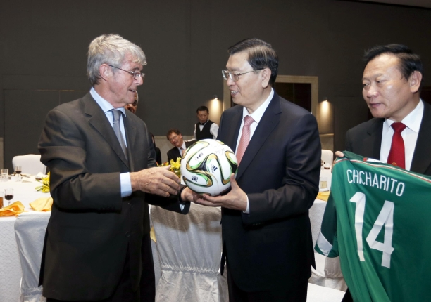 ????前中國(guó)國(guó)家足球隊(duì)主教練米盧蒂諾維奇,25日將這些禮物送給到訪墨西哥的中國(guó)全國(guó)人大常委會(huì)委員長(zhǎng)張德江。