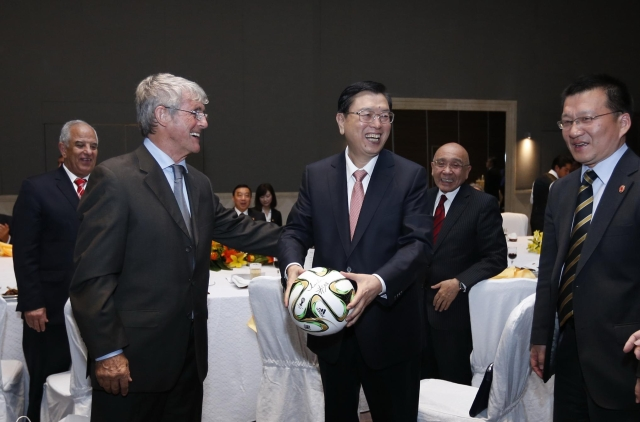 ????張德江稱(chēng)贊米盧“你為中國(guó)足球做出了貢獻(xiàn)”。