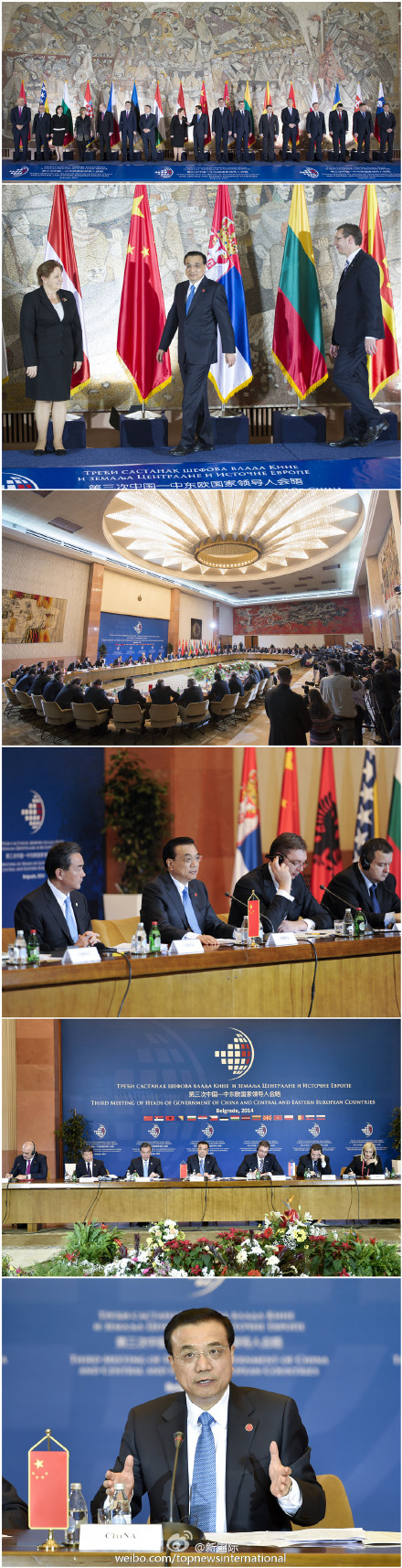 ??? 新華網(wǎng)北京12月17日電 據(jù)新華社“新國際”微博報道,當(dāng)?shù)貢r間16日下午,李克強總理在貝爾格萊德出席第三次中國-中東歐國家領(lǐng)導(dǎo)人會晤。中東歐16國領(lǐng)導(dǎo)人與會。李克強與塞爾維亞總理武契奇共同主持會晤,并就推進中國與中東歐合作提出五點建議,與會各方深入討論,達成了深化合作的廣泛共識。