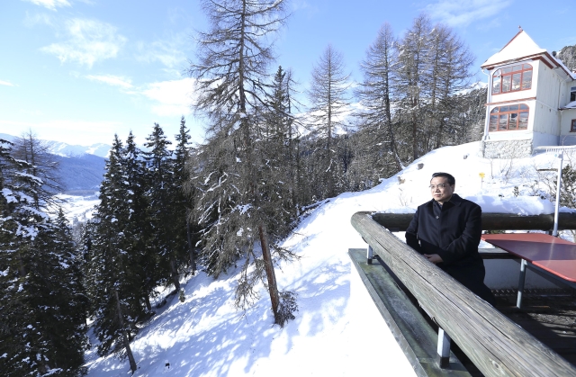 ????上了山頂,才明白咱總理為什么要來。達沃斯小鎮地處阿爾卑斯山脈,周圍群山環抱。海拔1800米的沙茨阿爾卑山頂視野極好,極目遠眺,藍天,白云,雪峰,蒼松,周圍靜謐得似乎只剩下積雪掉落的聲音。