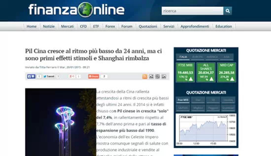 意大利財(cái)經(jīng)在線網(wǎng)站1月20日發(fā)表文章稱雖然2014年中國的國內(nèi)生產(chǎn)總值是24年來最低,但工業(yè)生產(chǎn)、零售業(yè)和股市都釋放出健康和積極的信號(hào)。