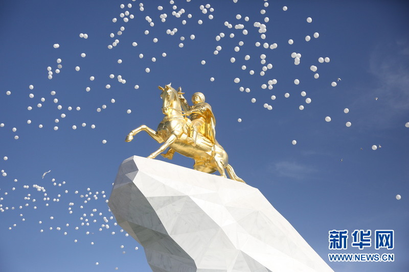 土庫曼斯坦總統金像落成 路中央雕塑成時尚(高清組圖)
