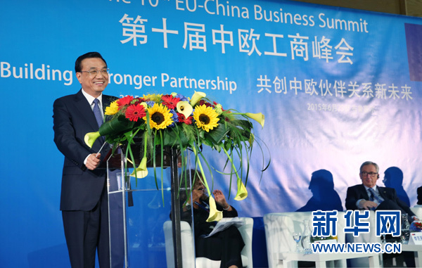 當?shù)貢r間6月29日,國務院總理李克強在布魯塞爾與歐盟委員會主席容克共同出席中歐工商峰會,并發(fā)表主旨演講。新華社記者 姚大偉攝