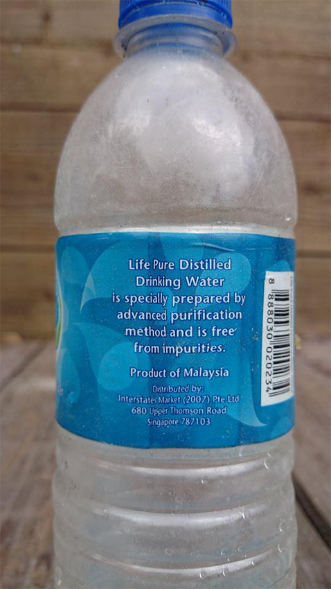 圖為當(dāng)?shù)芈蓭煱l(fā)現(xiàn)的礦泉水瓶,上面標(biāo)有“產(chǎn)自馬來(lái)西亞”。