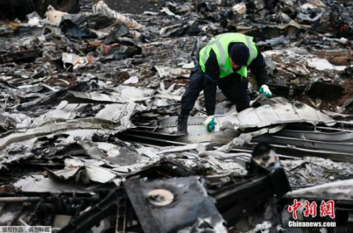資料圖:當(dāng)?shù)貢r間2014年11月16日,烏克蘭頓涅茨克地區(qū),墜毀MH17飛機(jī)殘骸收集工作進(jìn)行中。據(jù)悉,在事故現(xiàn)場已成功搜尋到起落架的部分殘骸,一大塊機(jī)身殘片和以及疑似乘客遺體。專家們希望將這些殘骸運往荷蘭之后,能夠通過技術(shù)手段還原某個部件,以確定事故具體原因。