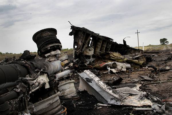 ↑2014年7月18日,在烏克蘭東部地區頓涅茨克州拍攝的失事客機殘骸。