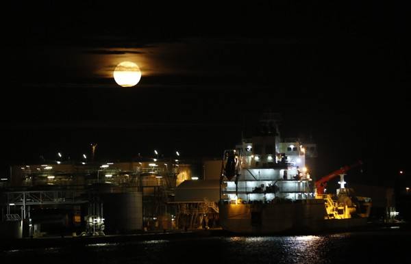 ↑每時每刻不停運轉的安特衛普港夜景。