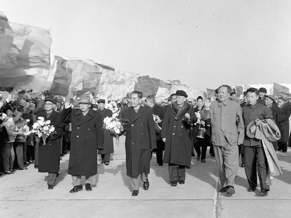 1964年3月15日,國務院總理周恩來結束了對非洲10個國家、阿爾巴尼亞和亞洲3個國家的訪問之后,乘專機回京。黨和國家領導人毛澤東、劉少奇、鄧小平等以及首都各界群眾五千多人前往機場熱烈歡迎。(新華社記者劉慶瑞攝)