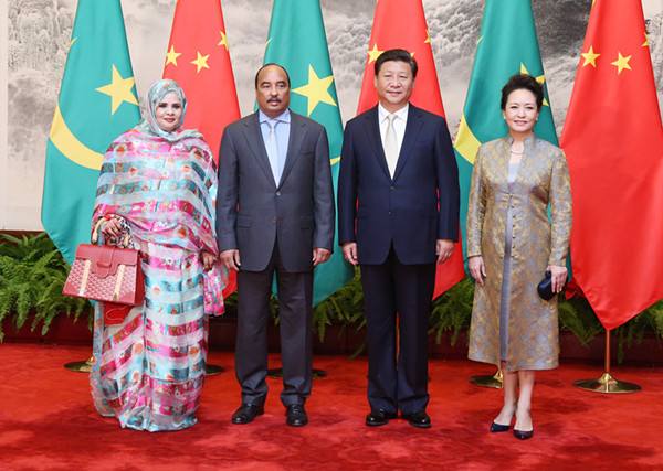 2015年9月14日,習近平舉行儀式歡迎毛里塔尼亞總統阿齊茲訪華。這是習近平主席和夫人彭麗媛在人民大會堂同阿齊茲總統夫婦合影。(新華社記者姚大偉攝)