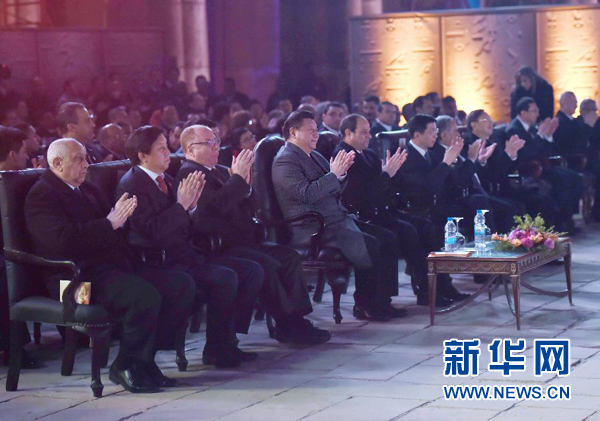 1月21日,國(guó)家主席習(xí)近平和埃及總統(tǒng)塞西在古老的盧克索神廟廣場(chǎng)共同出席中埃建交60周年慶祝活動(dòng)暨2016中埃文化年開(kāi)幕式。新華社記者張鐸攝