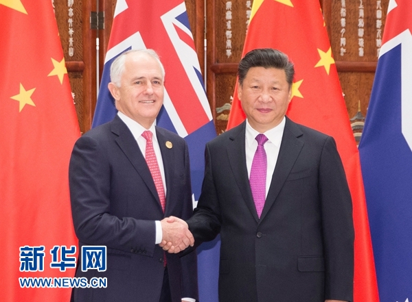 9月4日,國家主席習(xí)近平在杭州會(huì)見在華出席二十國集團(tuán)領(lǐng)導(dǎo)人杭州峰會(huì)的澳大利亞總理特恩布爾。新華社記者 丁林 攝