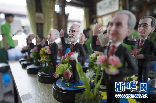 對于這組捏塑,吳小莉解釋說,領導人手中是中國牡丹花,身邊則是本國國花,象征著友誼;肩上的白鴿,腳下的世界地圖,象征世界和平。“我們希望能展現‘構建創新、活力、聯動、包容的世界經濟’的峰會主題。”
