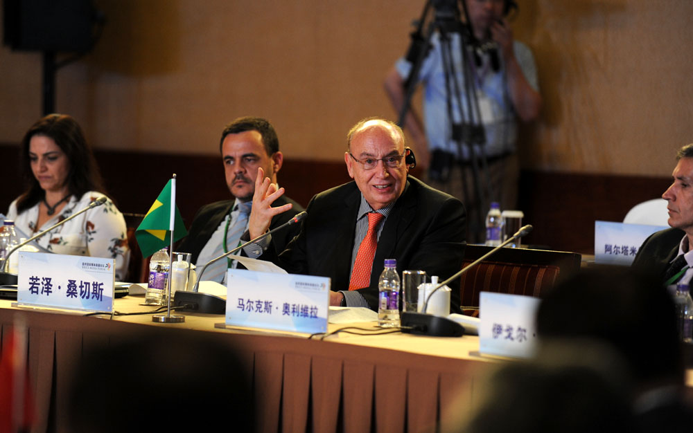 金磚國家媒體高端論壇開幕式6月8日在北京舉行。圖為論壇共同主席、巴西金融資訊集團總裁若澤·桑切斯發(fā)表講話。 新華網 孫韜 攝