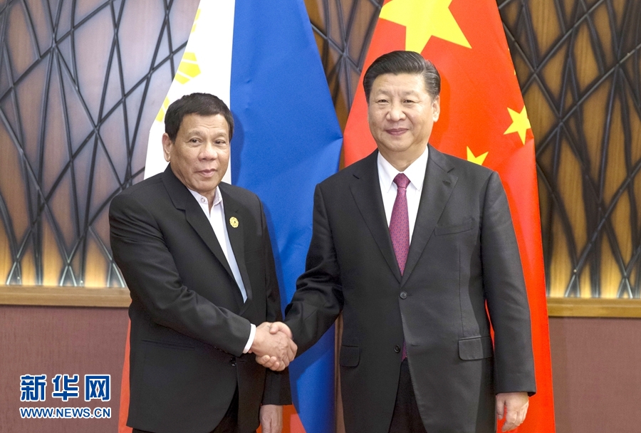 11月11日,國家主席習(xí)近平在越南峴港會見菲律賓總統(tǒng)杜特爾特。新華社記者 李濤 攝