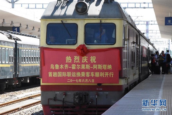 6月8日,旅客們開始登上開往哈薩克斯坦阿斯塔納的9001次國際旅客列車。當(dāng)日,隨著開往哈薩克斯坦阿斯塔納的9001次國際旅客列車駛出站臺,新疆霍爾果斯至阿斯塔納客運鐵路正式投入運行。這標(biāo)志著繼新疆阿拉山口鐵路口岸之后,中哈兩國開行又一條新的鐵路客運通道。新華社記者 張曉龍 攝