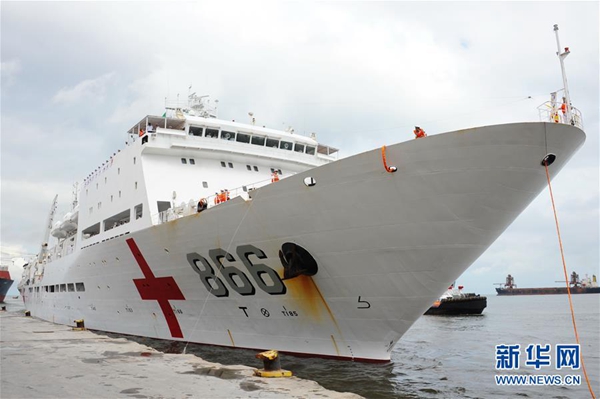 9月19日,中國海軍和平方舟醫(yī)院船停靠塞拉利昂弗里敦港。執(zhí)行“和諧使命-2017”任務(wù)的中國海軍和平方舟醫(yī)院船19日在任務(wù)指揮員管柏林、政委金毅率領(lǐng)下抵達(dá)塞拉利昂弗里敦港,開始為期8天的友好訪問并提供人道主義醫(yī)療服務(wù)。這是中國海軍艦艇首次訪問塞拉利昂。新華社記者石松攝