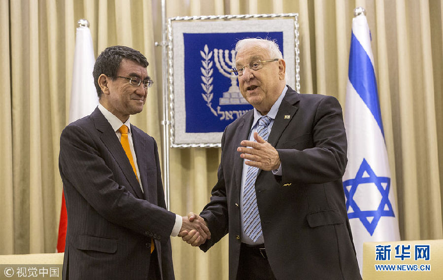 12月25日,耶路撒冷,日本外相河野太郎訪問耶路撒冷,與以色列總統魯文·里夫林會晤。(圖片來源:視覺中國)