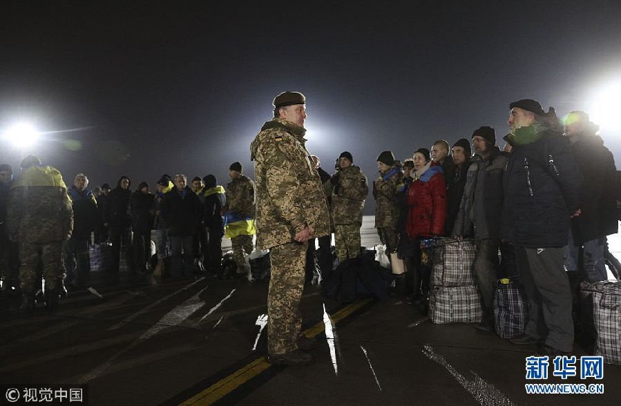 12月27日,烏克蘭哈爾科夫,獲釋戰俘抵達哈爾科夫。烏克蘭政府軍與東部民間武裝當日舉行了大規模的交換戰俘行動。(圖片來源:視覺中國)