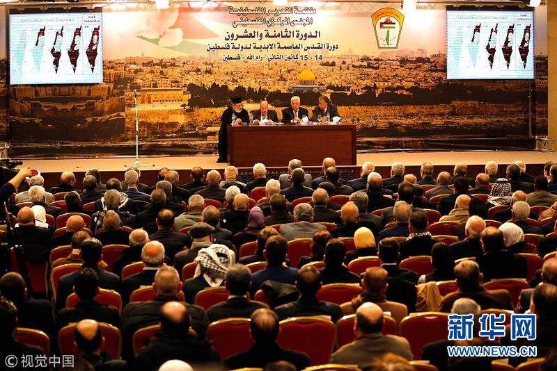 1月14日,約旦河西岸拉馬拉,巴勒斯坦總統阿巴斯在巴勒斯坦中央委員會會議上發表講話,并稱以色列已經“終止”了奧斯陸協議。(圖片來源:視覺中國)
