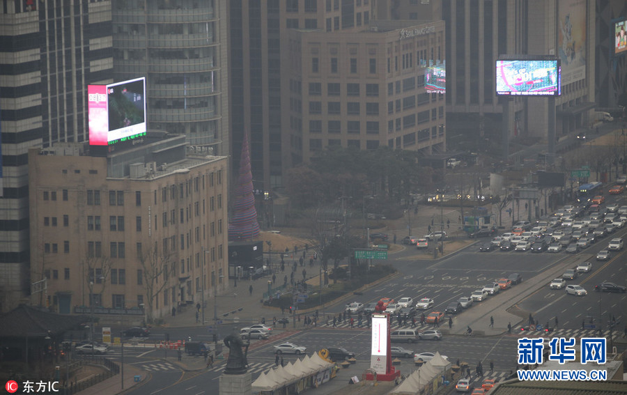 1月16日,韓國首爾,當天早晨,首爾污染指數爆表,城市籠罩在霧霾之下。(圖片來源:東方IC)