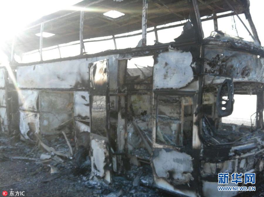 1月18日,哈薩克斯坦阿克托別市(Aktobe),一輛巴士在行駛途中著火,造成至少52人喪生。報(bào)道稱只有5名人從著火的車中逃生,遇難者均為烏茲別克斯坦公民。(圖片來(lái)源:東方IC)