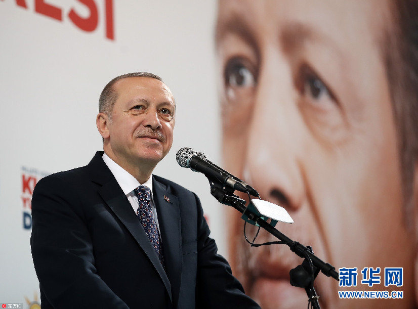 土耳其總統埃爾多安出席集會 手持橄欖枝發表講話