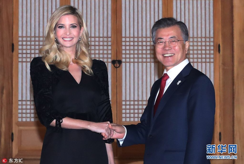 當(dāng)?shù)貢r(shí)間2018年2月23日,韓國首爾,韓國總統(tǒng)文在寅夫婦在青瓦臺設(shè)晚宴,歡迎伊萬卡來訪。美國總統(tǒng)特朗普之女、總統(tǒng)助理伊萬卡率領(lǐng)的美國代表團(tuán)23日抵韓進(jìn)行訪問,并將出席平昌冬奧會閉幕式。(圖片來源:東方IC)