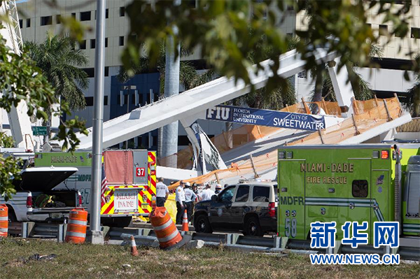 佛羅里達(dá)州邁阿密一座過街天橋15日坍塌 造成至少6人受傷